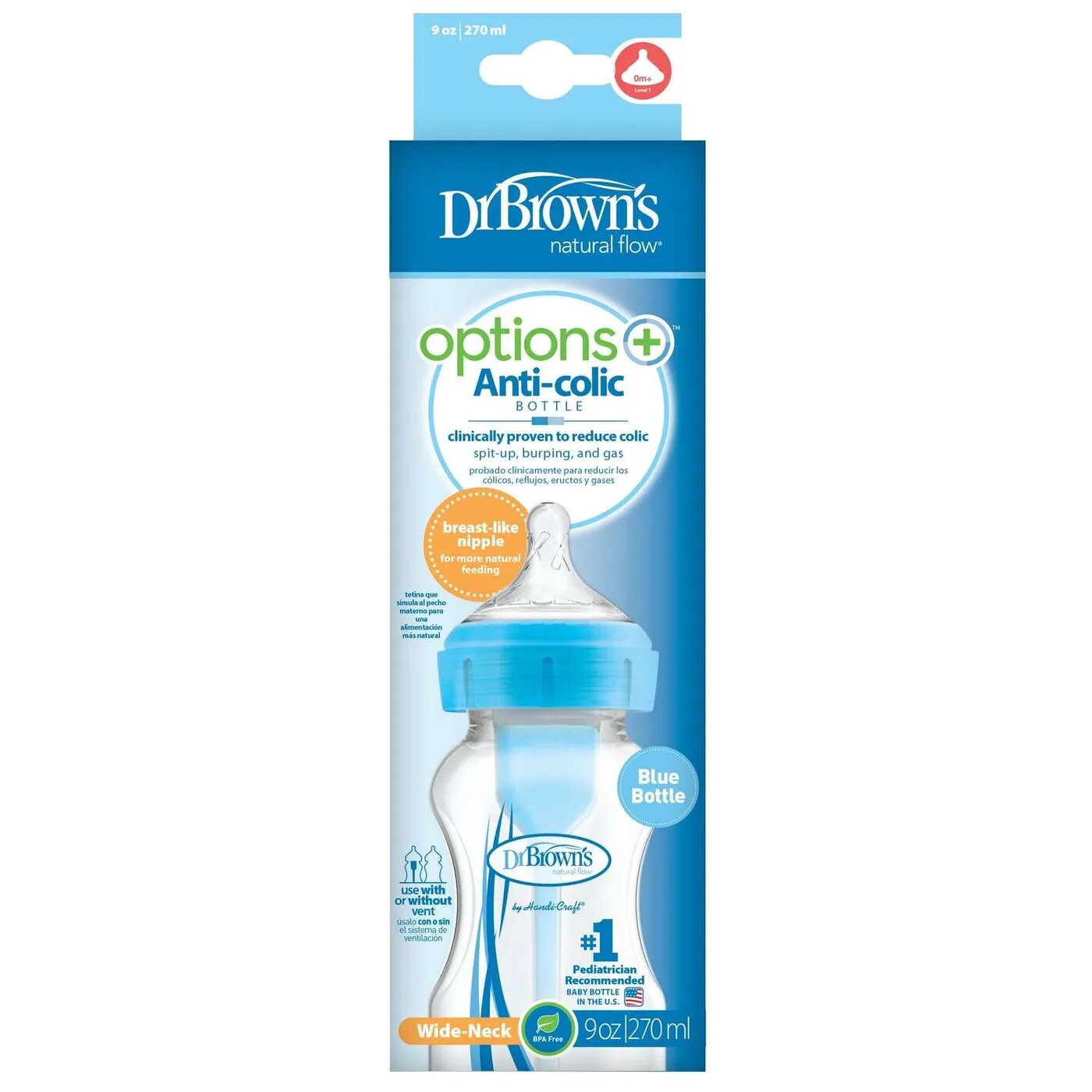 Бутылочка антиколик Dr. Brown's Options+ с широким горлышком, Синяя, 270 мл