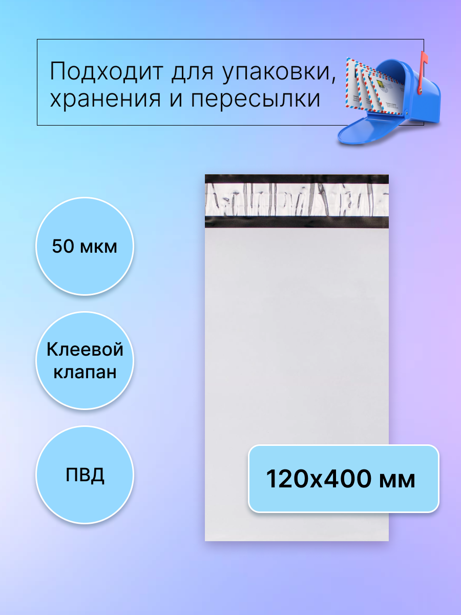 Курьерский пакет 120х400 мм. без кармана, клапан 40 мм. (50 мкм.), 20 штук информация: