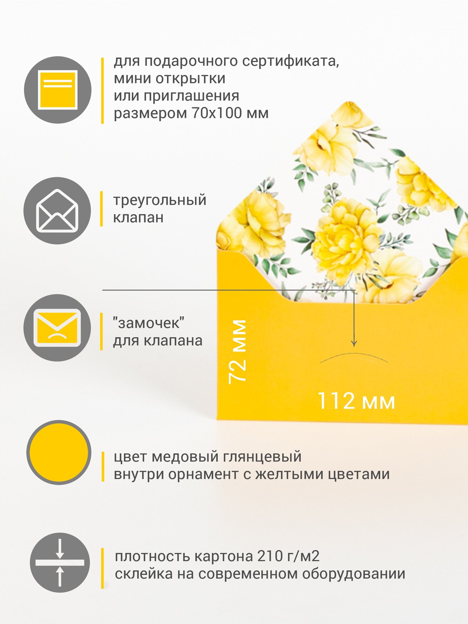 Подарочные картонные конверты мини C7 7х11 см, цвет медовый 10 шт. информация: