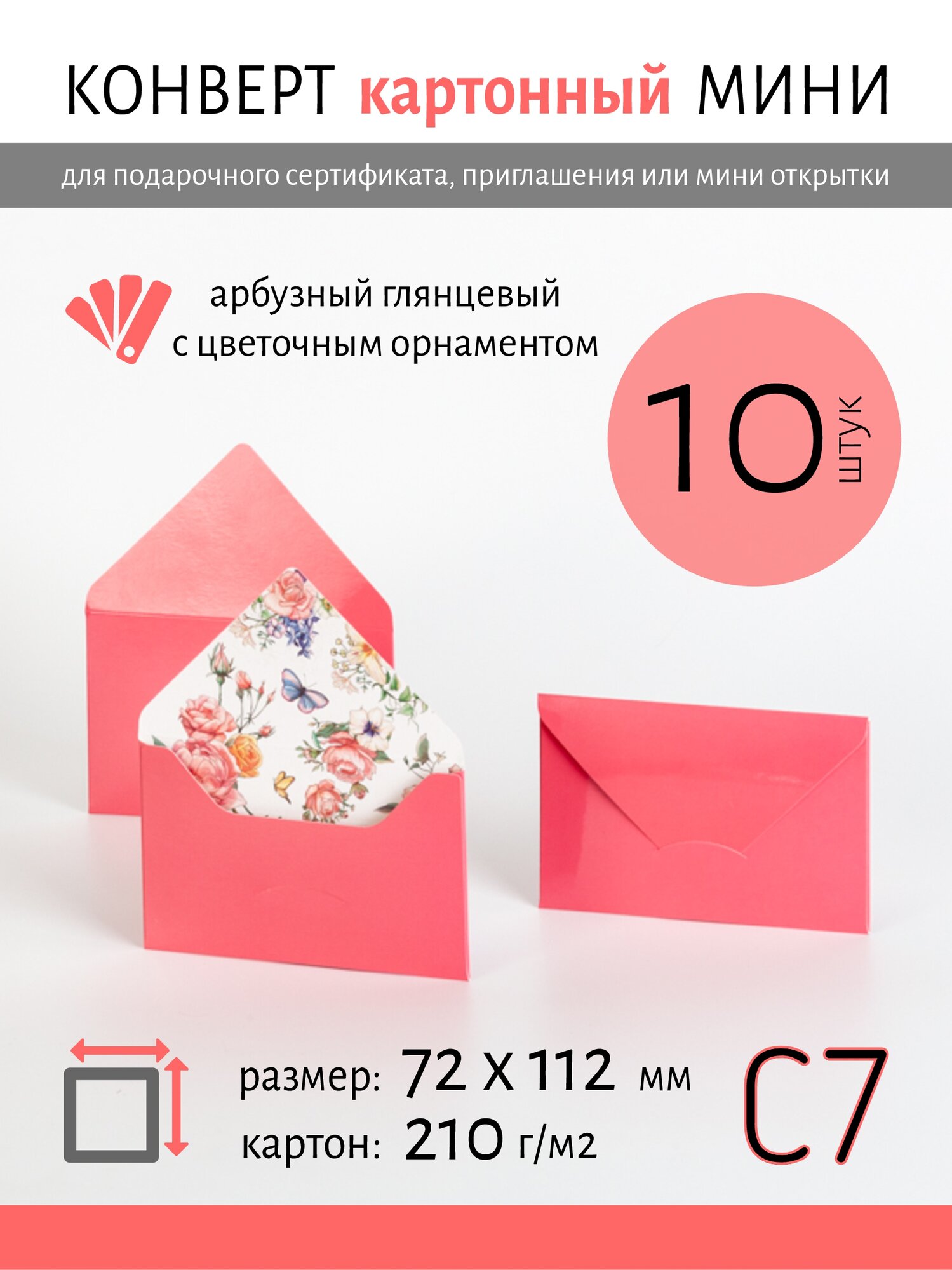 10 цен на Подарочные картонные конверты мини C7 7х11 см, цвет арбузный 10 шт.
