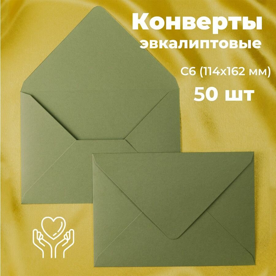 10 цен на Эвкалиптовые конверты бумажные для пригласительных, С6 114х162мм - набор 50 шт. цветные