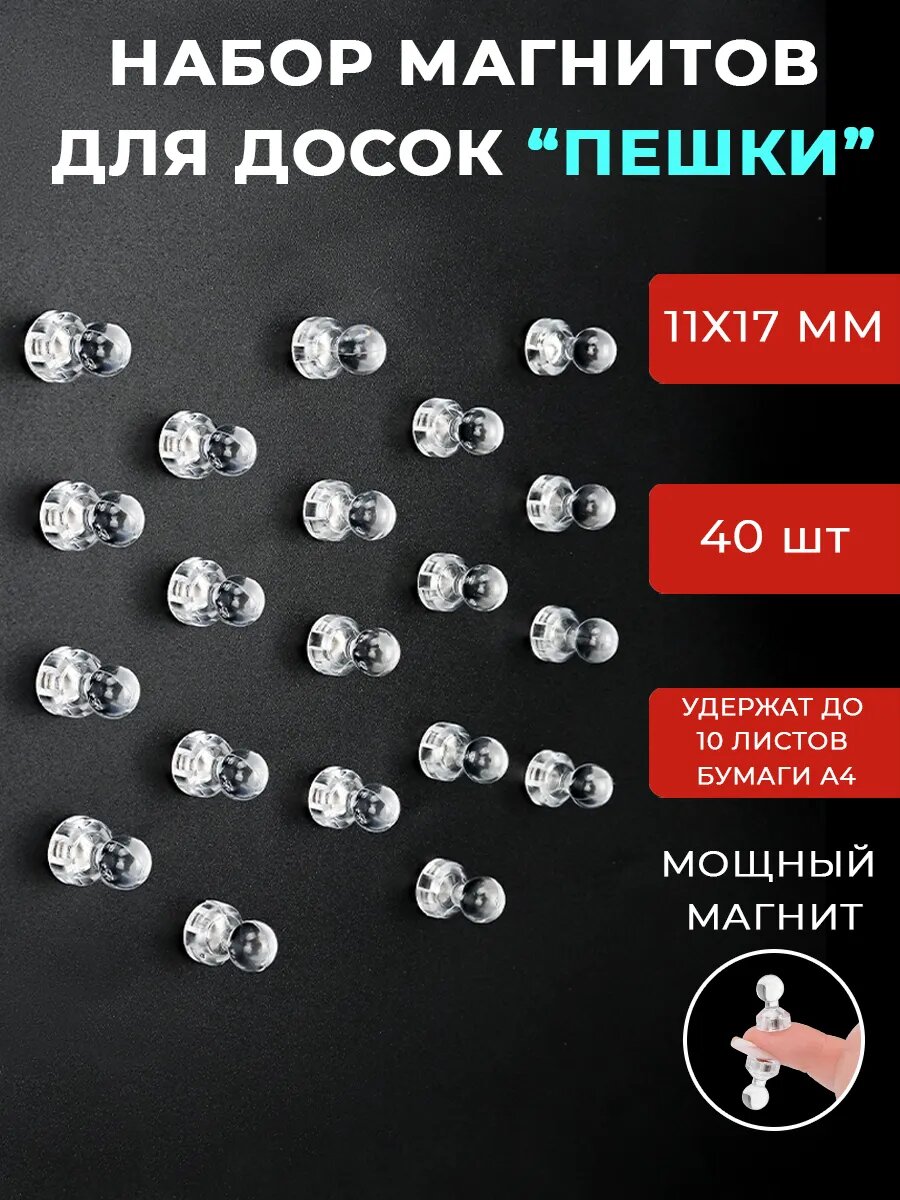 Набор канцелярских магнитов "Пешки" для магнитных досок, 40 штук информация: