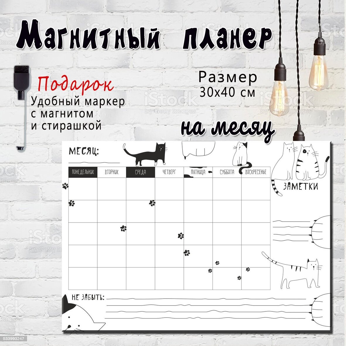 Магнитный планер А3 с маркером. /на месяц /поверхность пиши - стирай информация: