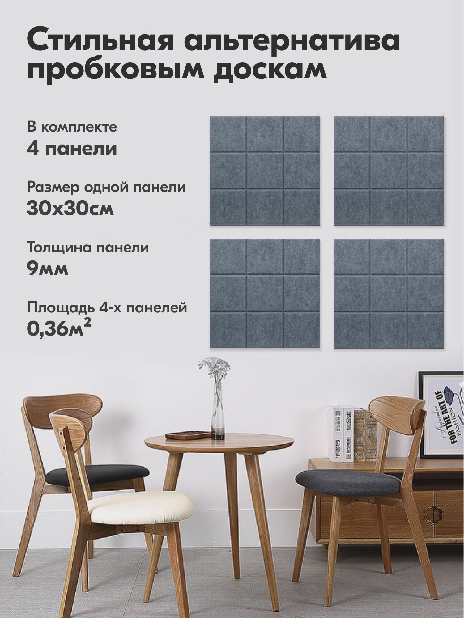 | Комплектация | 4 самоклеящиеся панели размером 30х30 см. в картонной коробке |