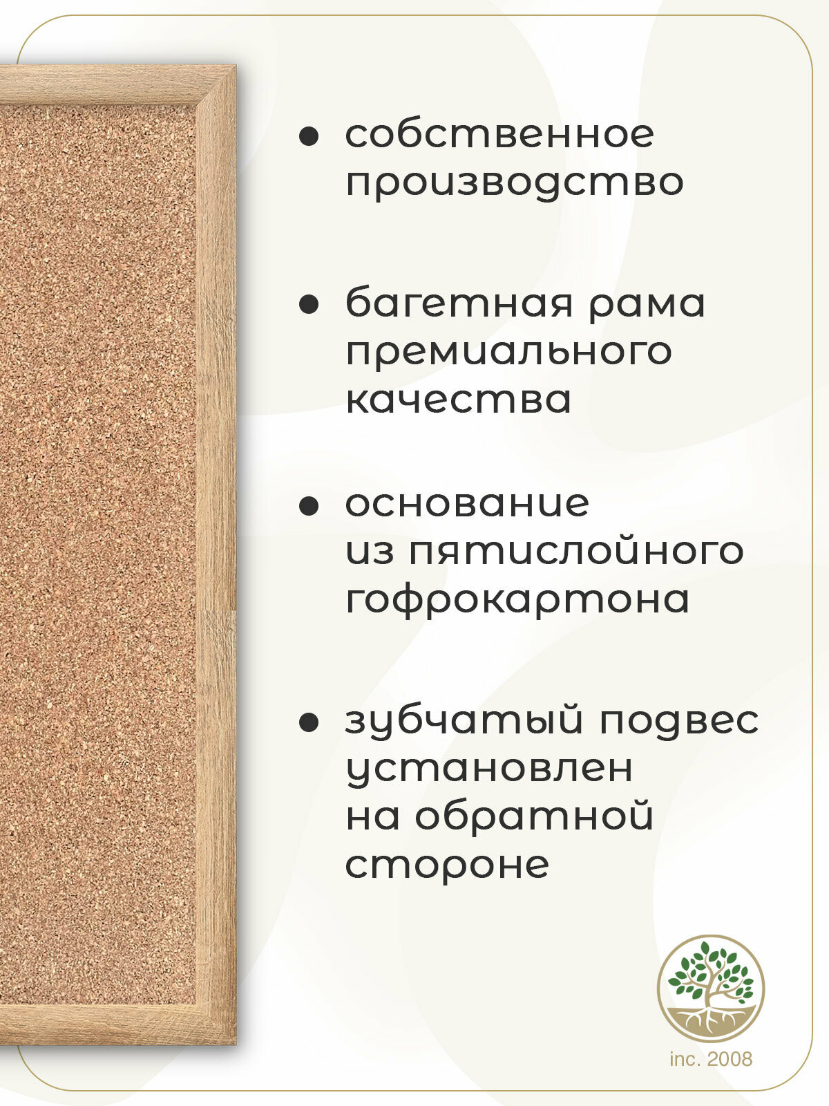| Подробная комплектация | доска пробковая в раме, скобы-подвесы, термопленка, коробка |