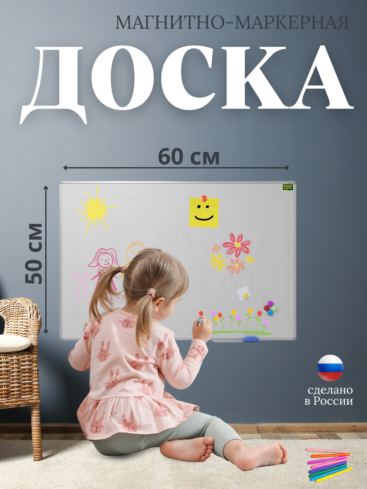 Магнитно-маркерная доска BOARDCAPITAL, рабочая поверхность 50x60 см, белая информация: