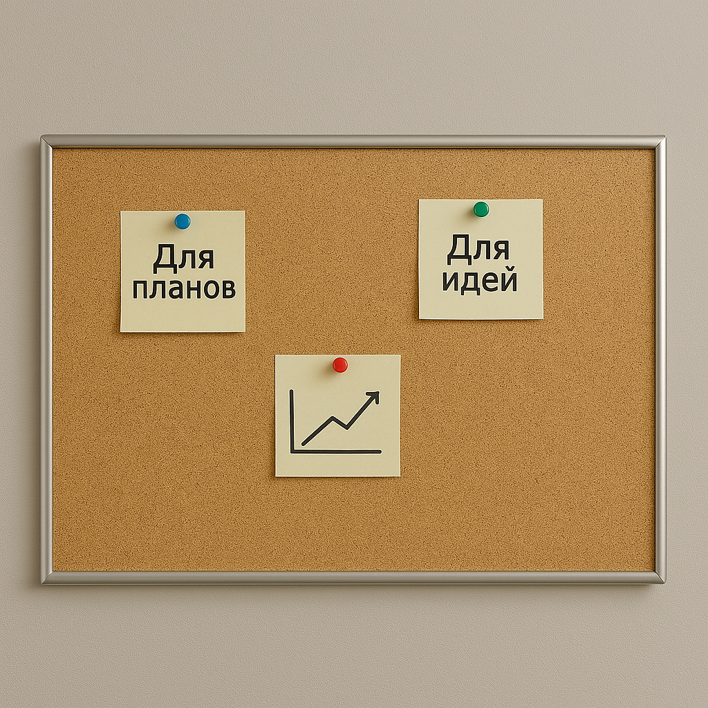 Отзывы на Пробковая доска 50х70 (см.) в алюминиевой раме на стену, информационная для заметок