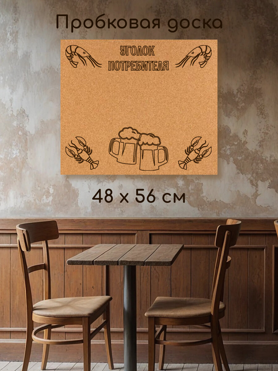 10 цен на Пробковая доска' Уголок потребителя ' 56х48 см. ( Две кружки)