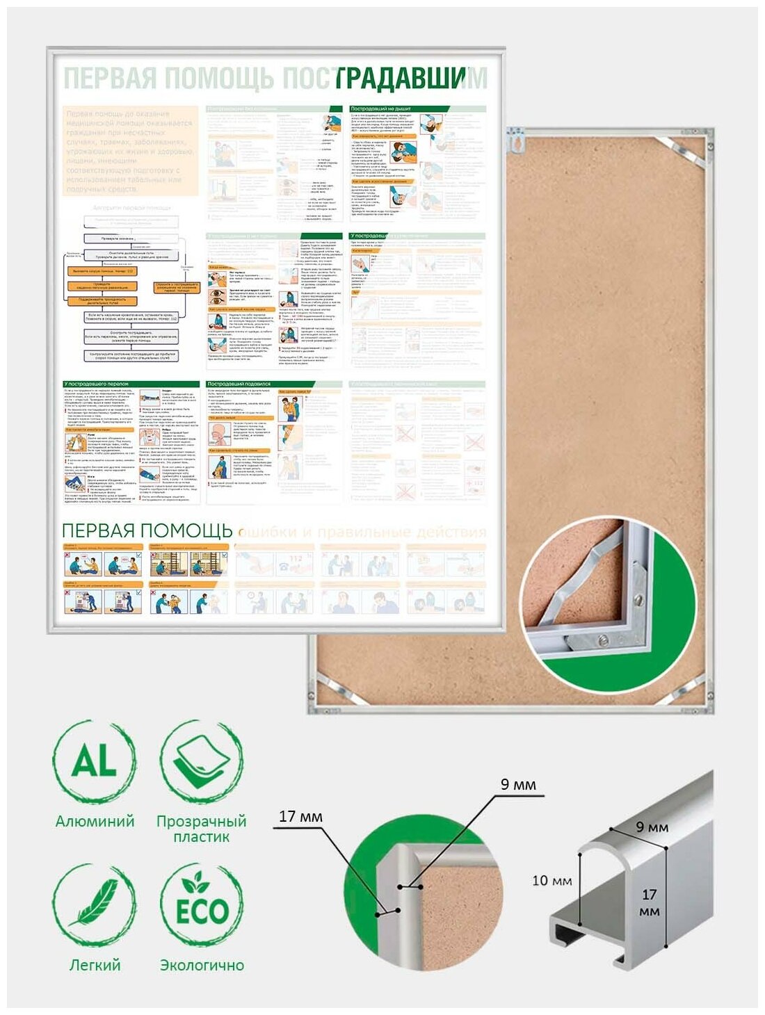 Отзывы на Стенд-доска "Первая помощь пострадавшим" 70х100см рама серебро