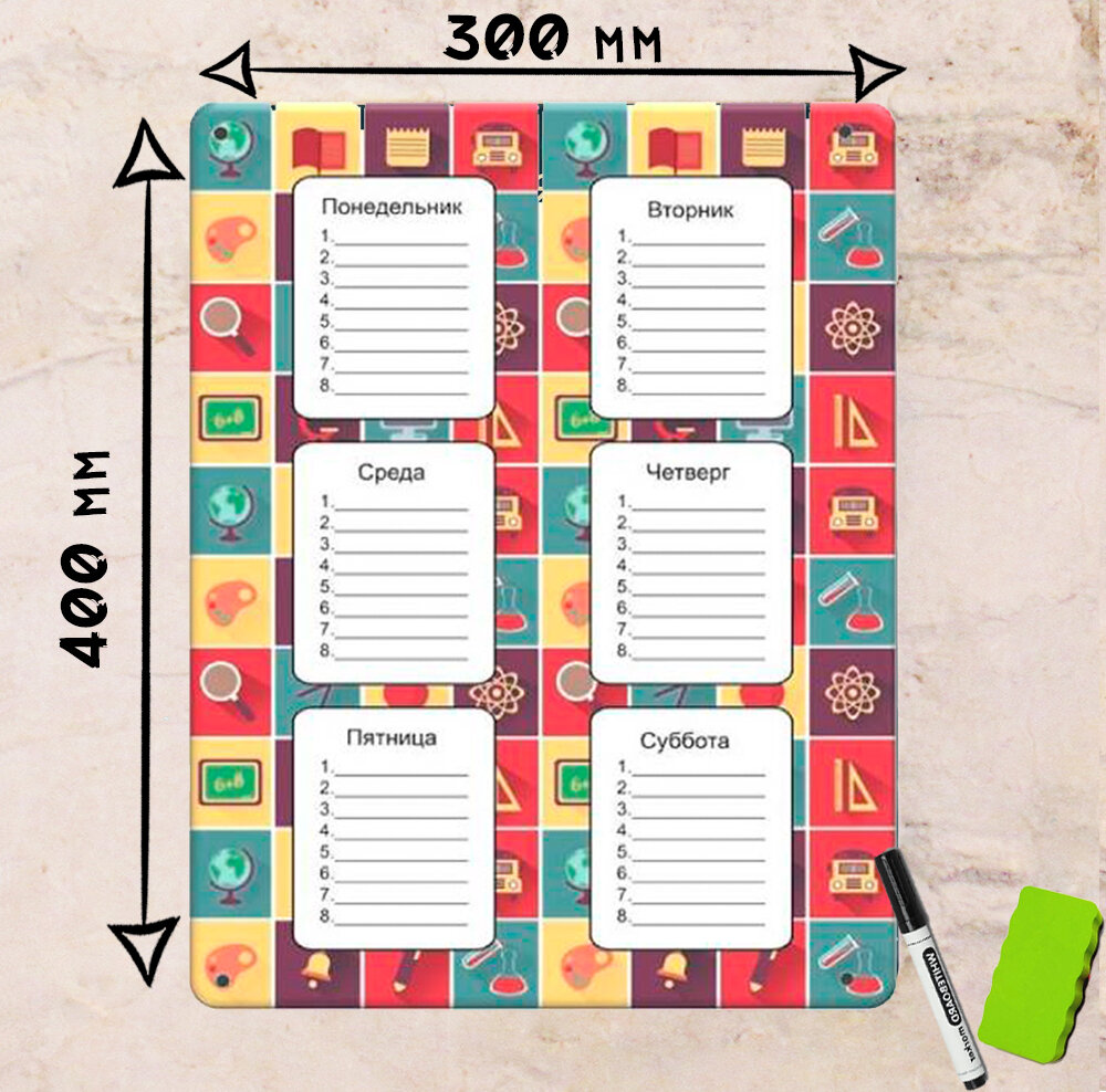 Магнитно маркерная доска Школьное Расписание Органайзер, на стену, металл, 30х40 см. информация: