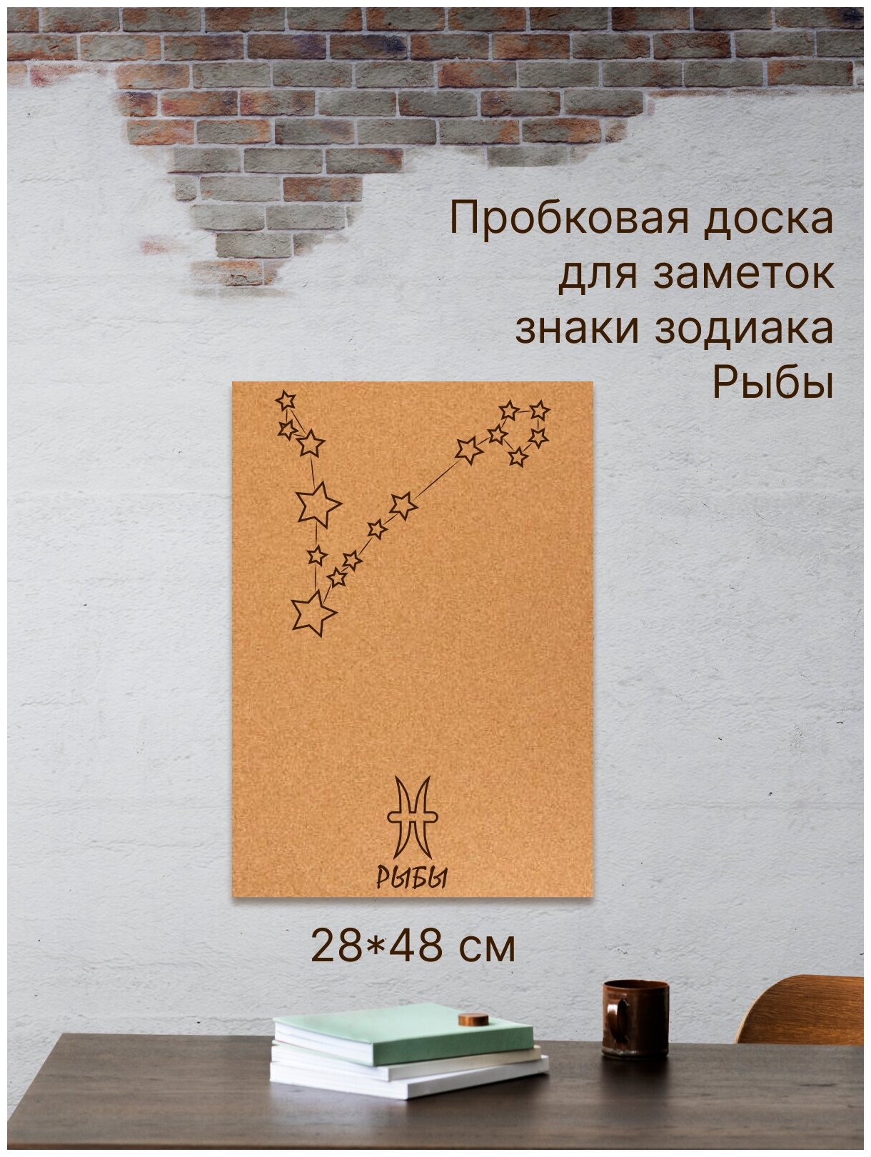10 цен на Пробковая доска без рамки для заметок на вспененной основе "Знаки зодиака. Рыбы", 48х28 см