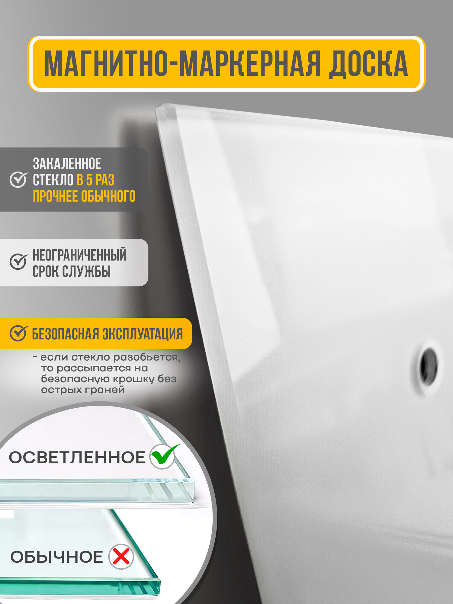 Стеклянная магнитно-маркерная доска 500х600 мм "белый кристалл" информация: