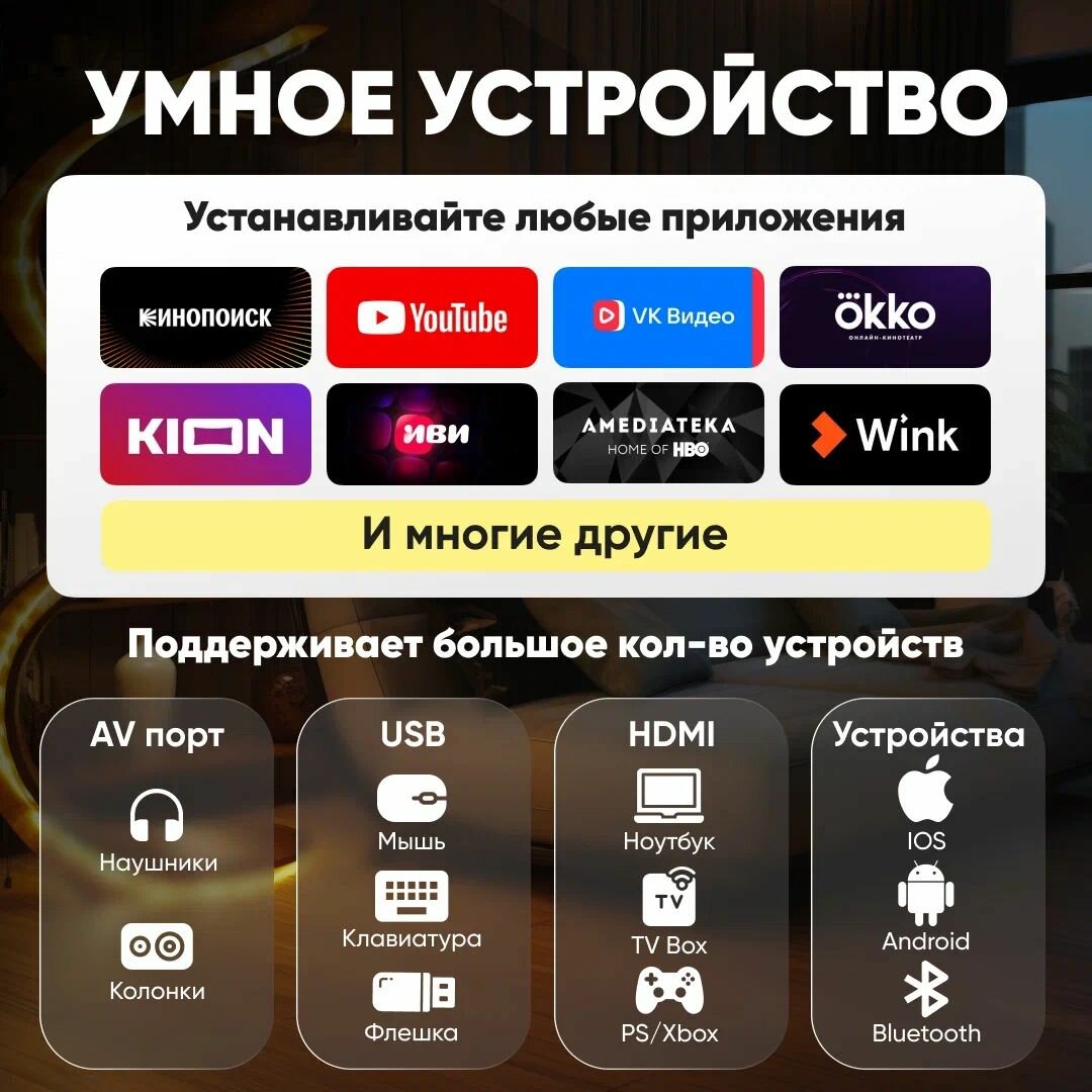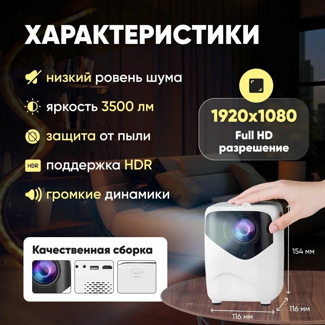 Проектор Умный 5G 2024, FULL HD 4K для фильмов и игр, Wi-Fi, Bluetooth, HD, 1LCD, белый информация: