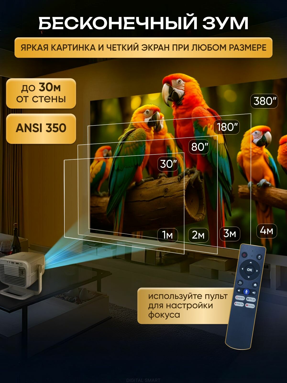 Проектор Умный 5G 2024, FULL HD 4K для игр и фильмов, встроенные динамики, Wi-Fi, Bluetooth информация: