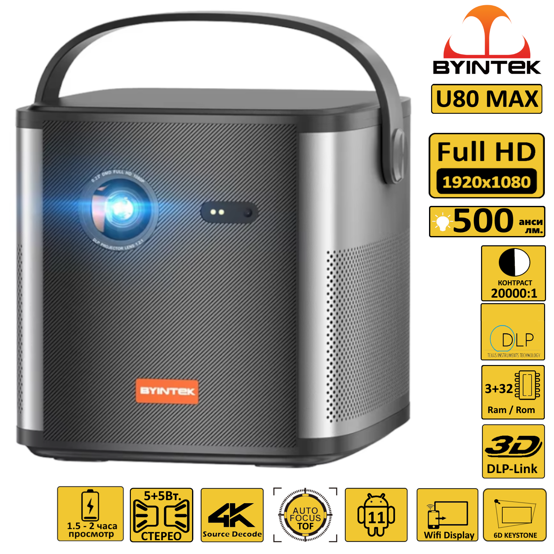 Проектор Byintek U80 MAX (1080p, 3-DLP, 3D, Android, 15 Ач) информация: