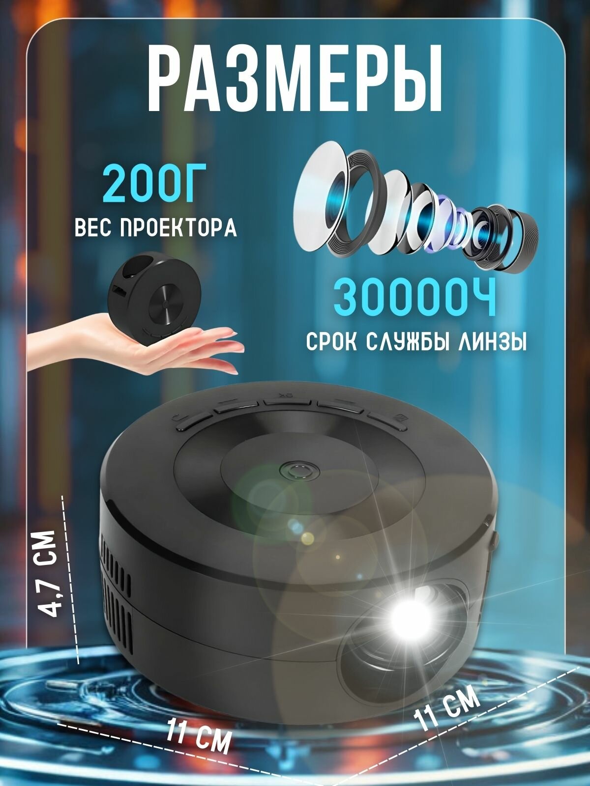 Мини проектор 4К с высоким разрешением 1920х1080 для фильмов и мультфильмов
