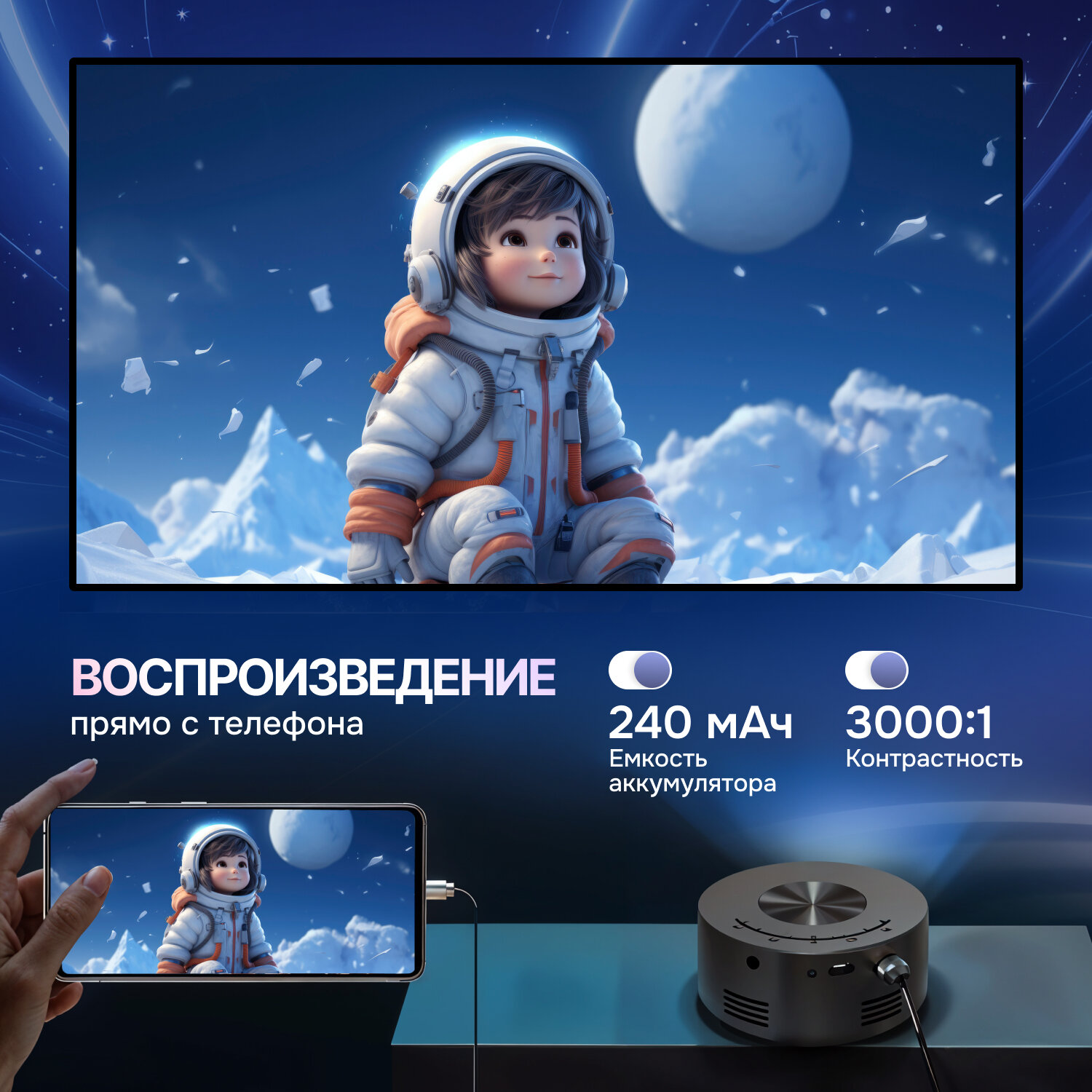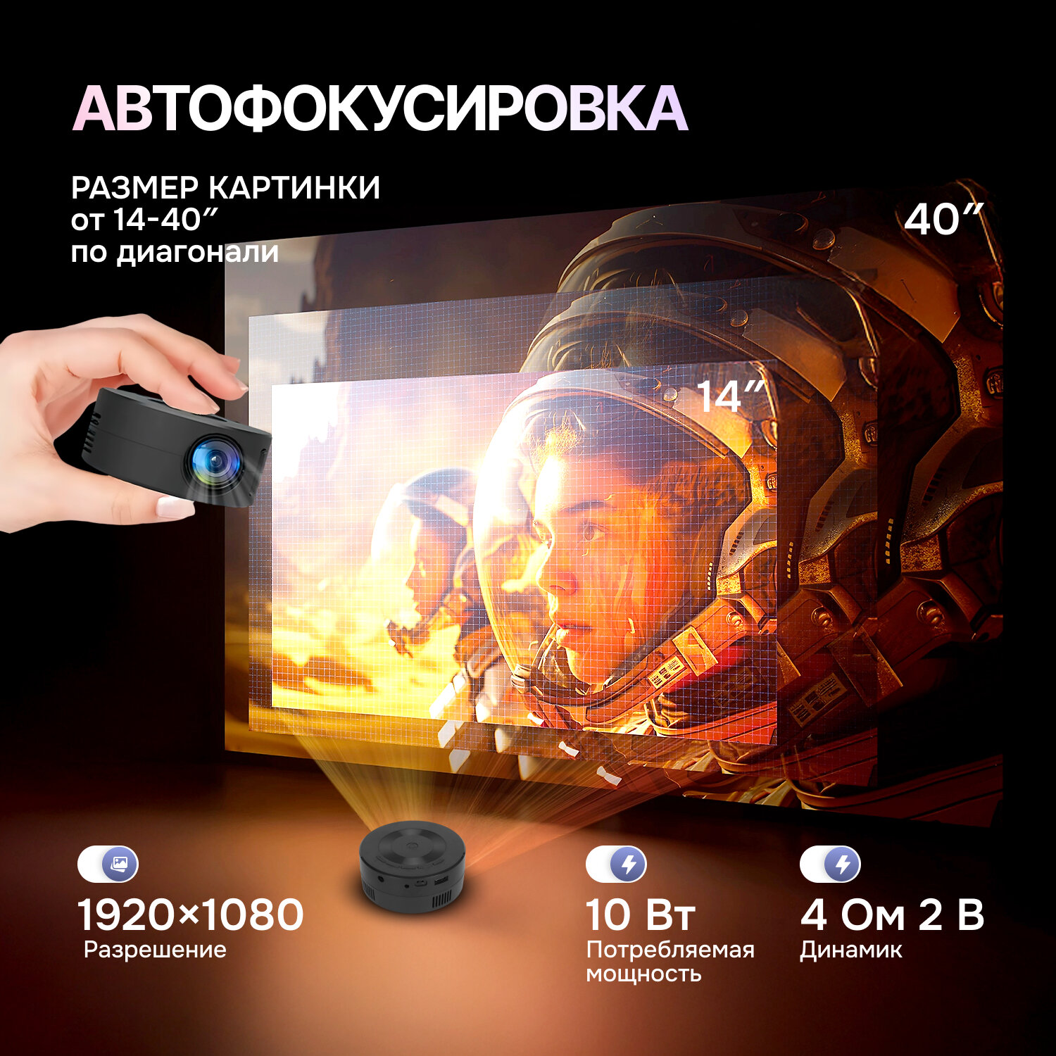 Мини проектор 4К с высоким разрешением 1920х1080 для фильмов и мультфильмов