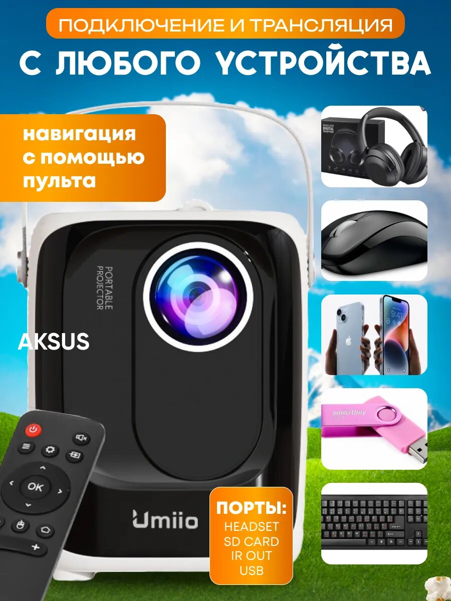 Портативный проектор UMIIO А008, белый, 1920x1080, Full HD, Bluetooth, Wi-Fi