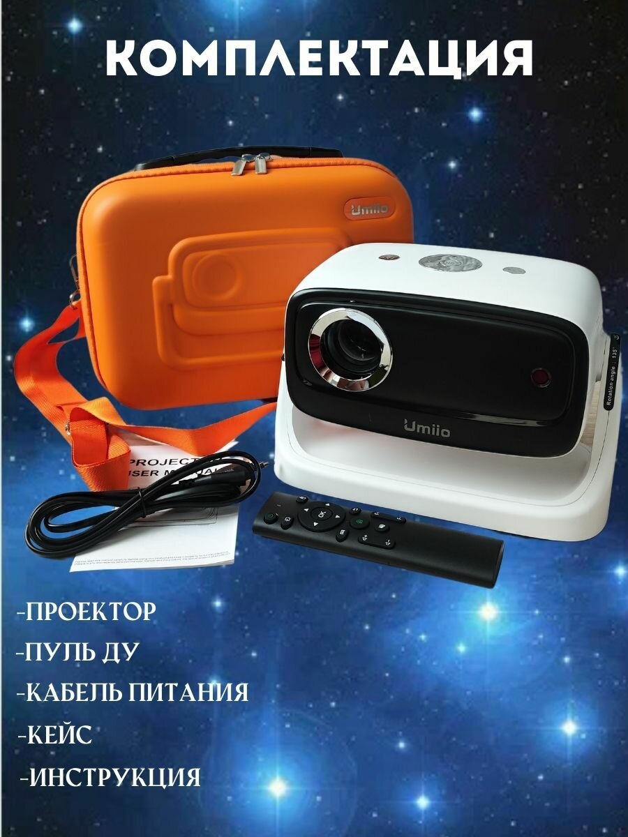 | Комплектация | Проектор, пульт ДУ, кабель зарядки, инструкция, кейс |
