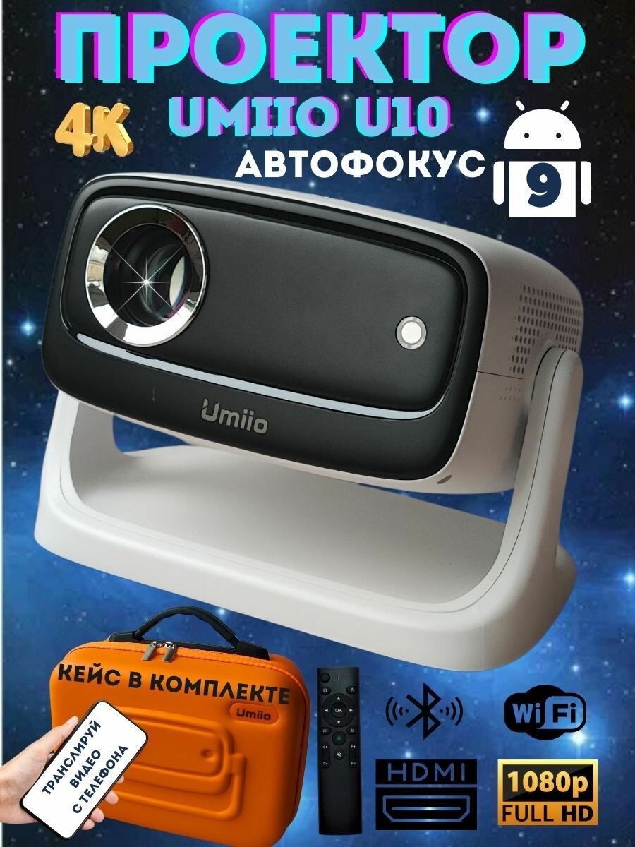 Портативный проектор UMIIO А008, белый, 1920x1080, Full HD, Bluetooth, Wi-Fi