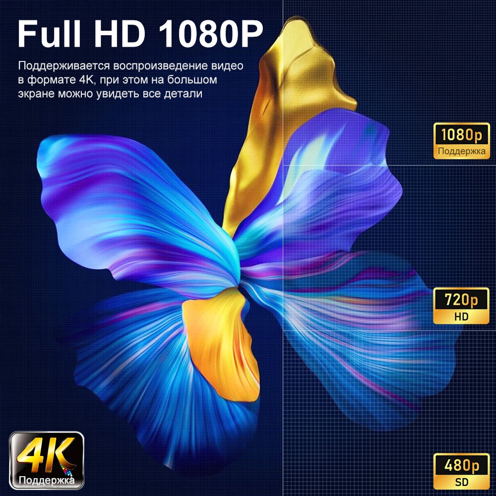 Мини проектор 4К с высоким разрешением 1920х1080 для фильмов и мультфильмов