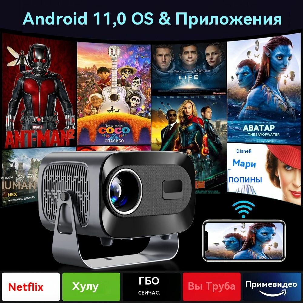 Мини проектор 4К с высоким разрешением 1920х1080 для фильмов и мультфильмов