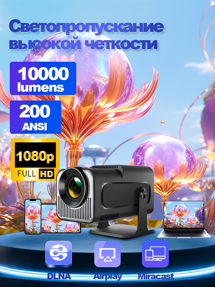 Мини проектор 4К с высоким разрешением 1920х1080 для фильмов и мультфильмов