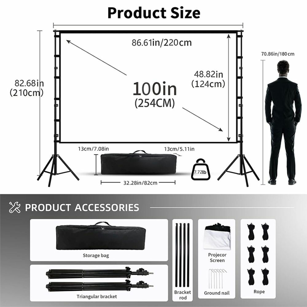 VEIDADZ 84" экран для проектора, без складок, портативный, для улицы