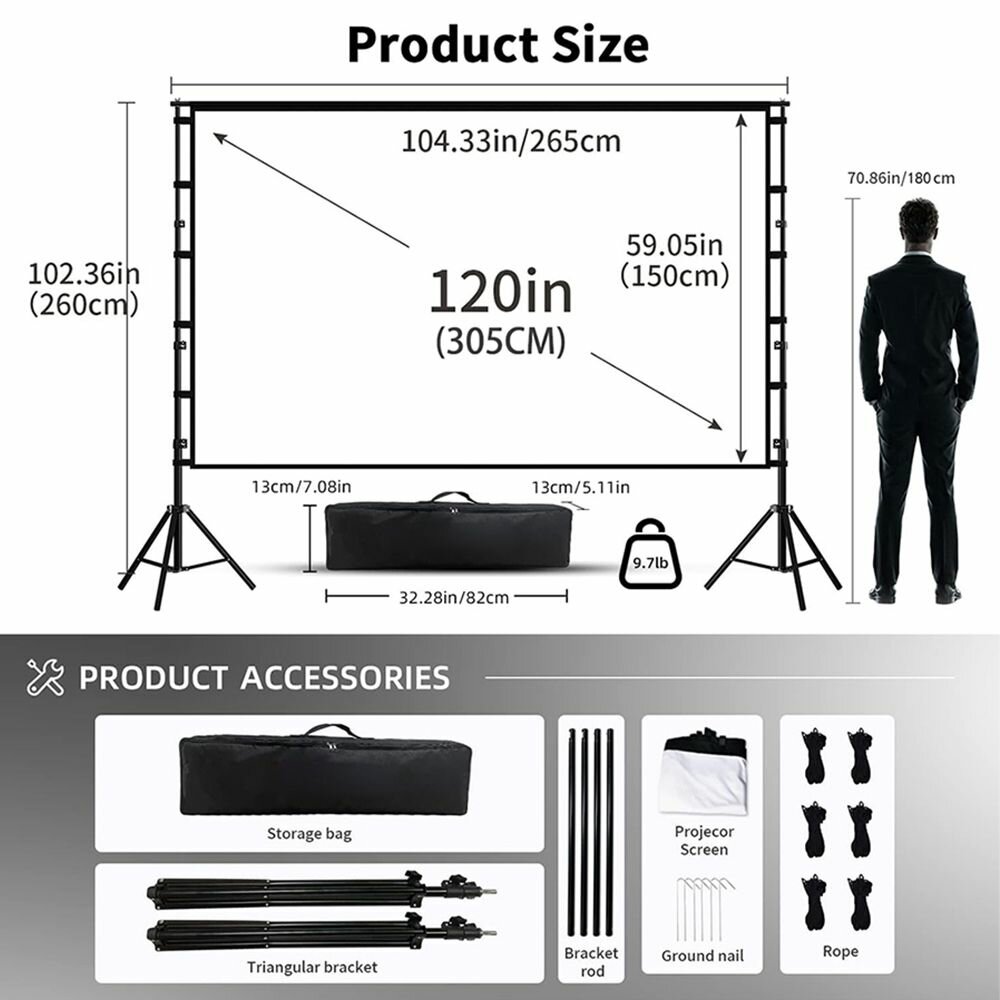 VEIDADZ 84" экран для проектора, без складок, портативный, для улицы