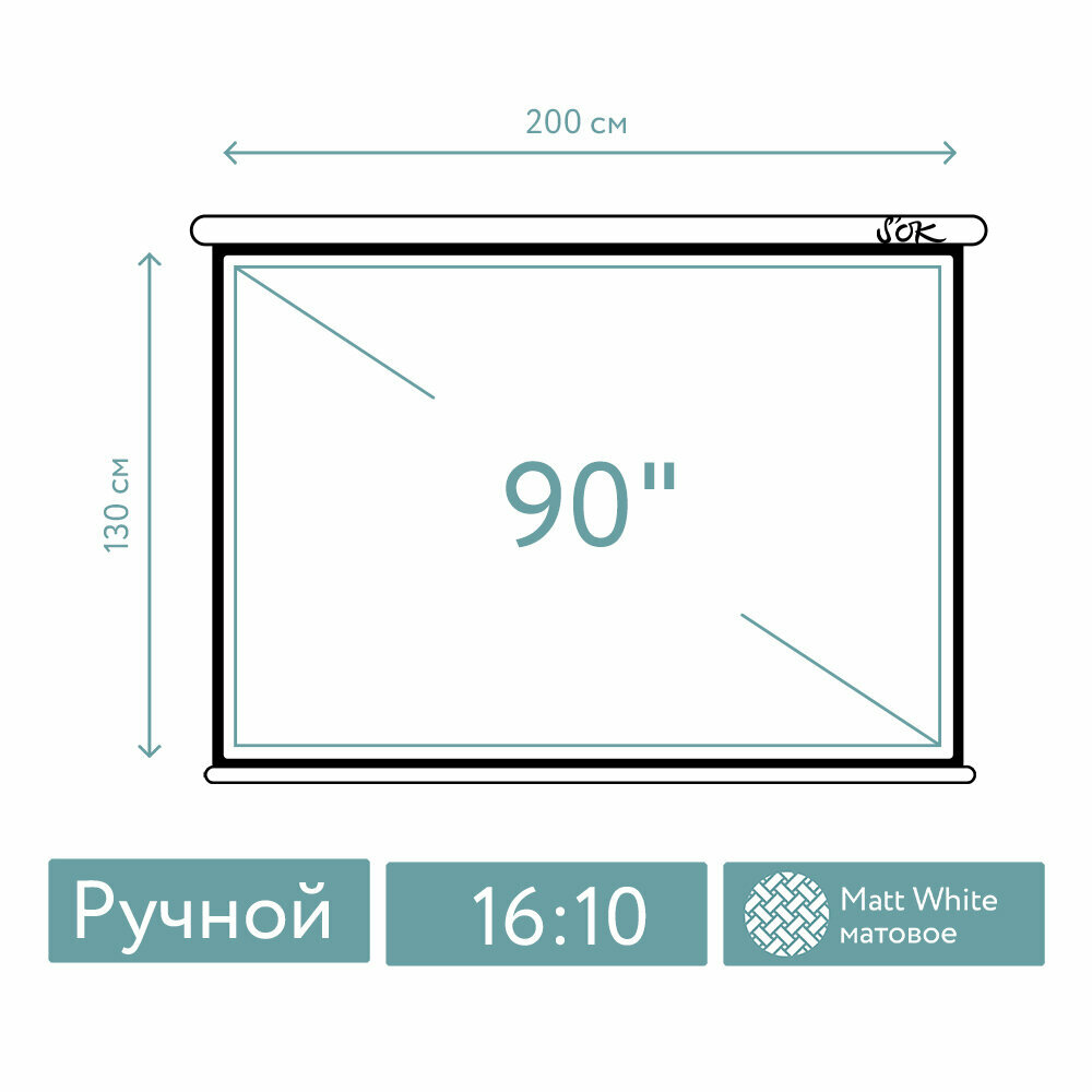 Экран для проектора SOK SCPSW-200x130 90 16:10 настенно-потолочный, ручной, матовый, белый информация: