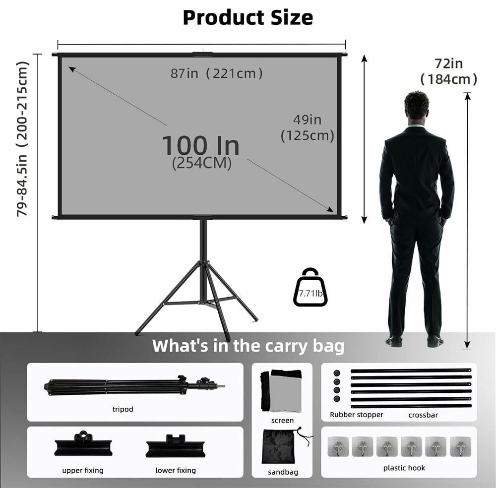 VEIDADZ 84" экран для проектора, без складок, портативный, для улицы