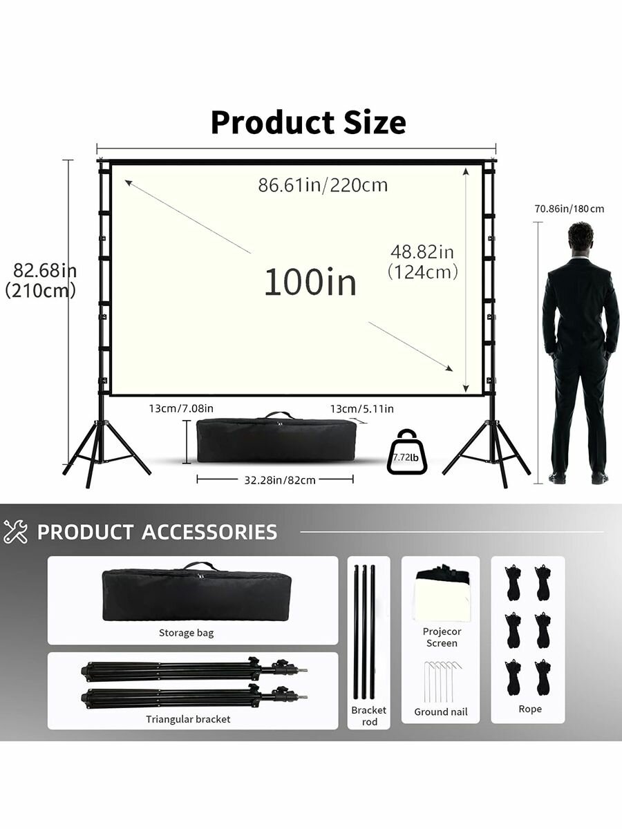 VEIDADZ 84" экран для проектора, без складок, портативный, для улицы