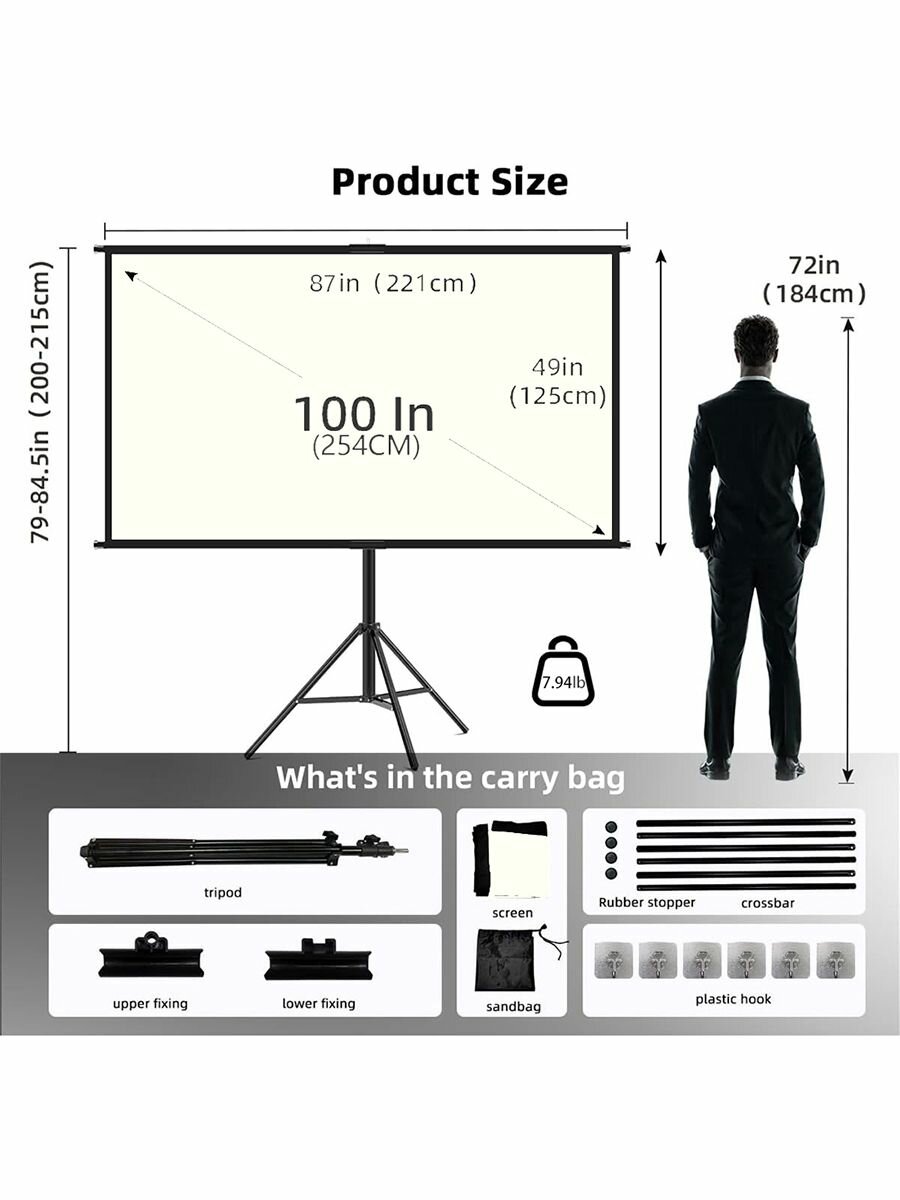 10 цен на VEIDADZ 100" ALR экран для проектора, белый, с регулируемым штативом