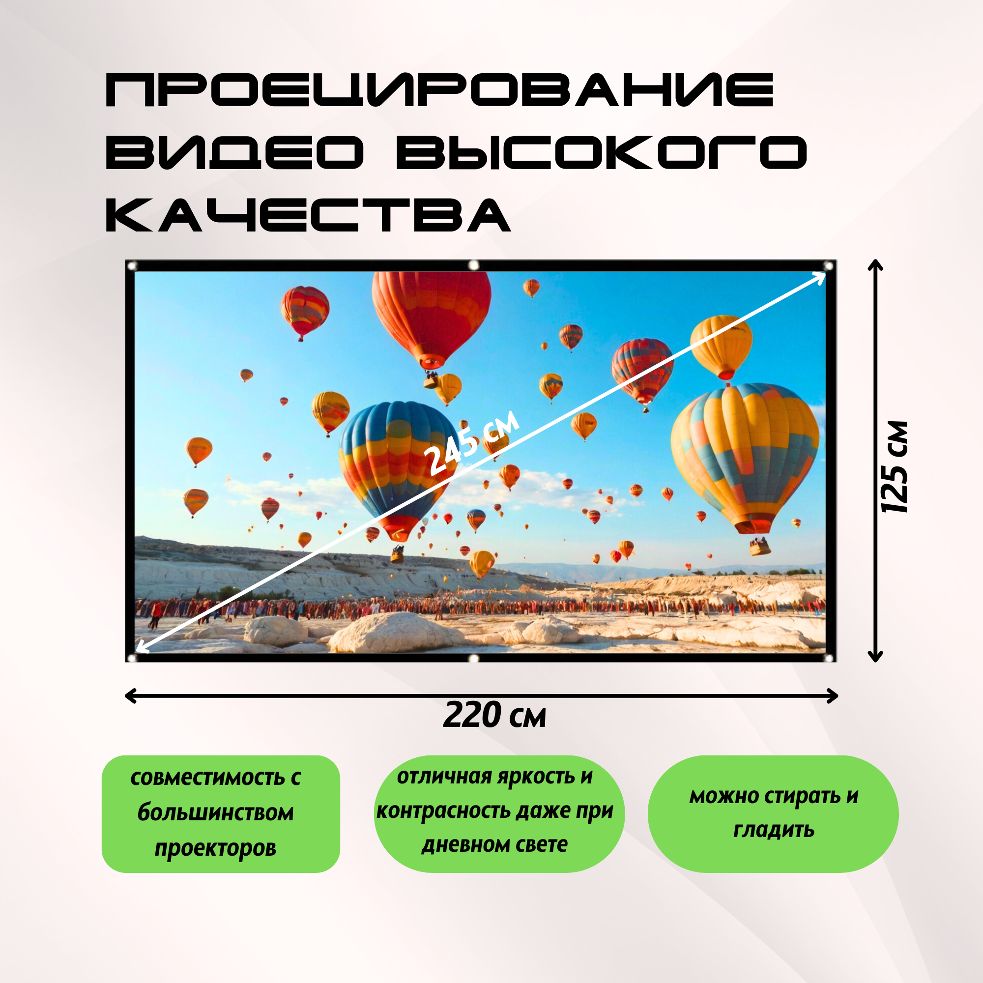 Экран для проектора с кольцами, тканевый, складной 100 ДЮЙМОВ, полотно для проектора 16:9 (220х125см) информация: