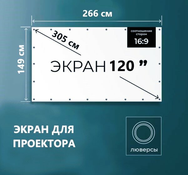 Экран для проектора 120" 16:9 (266х150 см). Полотно с люверсами в тубе