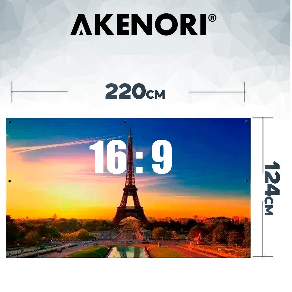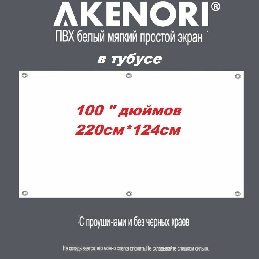 Экран для проектора ПВХ 100 дюймов Akenori матовый, белый с кольцами В тубусе 16:9 100WT информация: