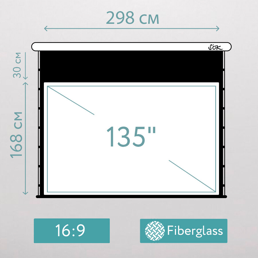 Экран S'OK SCPSMT-298x168ED30 Pro 135' моторизованный с боковым натяжением, White PVC информация:
