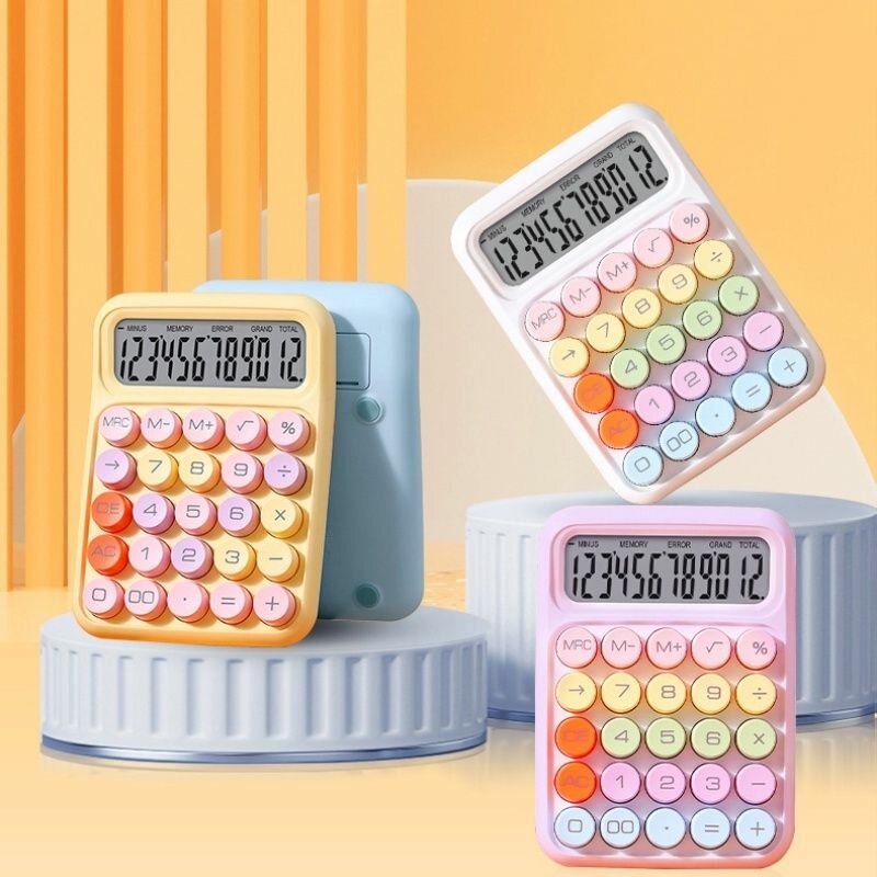 10 цен на Портативный калькулятор круглой кнопки конфетного цвета для офиса, школы, дома