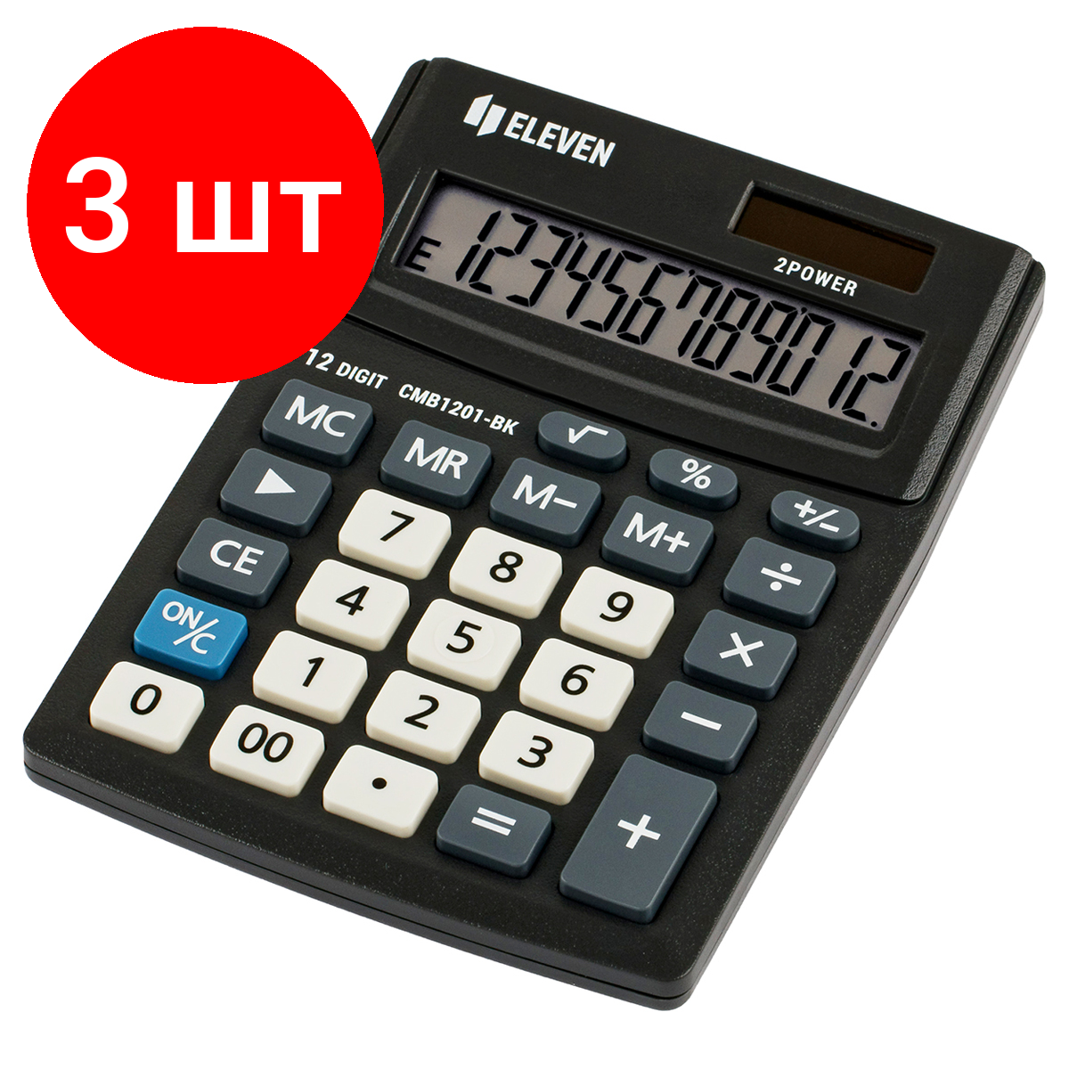 10 цен на Комплект 3 шт, Калькулятор настольный Eleven Business Line CMB1201-BK, 12 разрядов, двойное питание, 102*137*31мм, черный