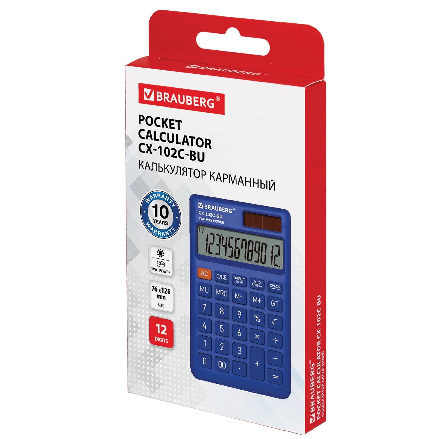 | Подробная комплектация | Карманный калькулятор BRAUBERG CX-102C-BU |