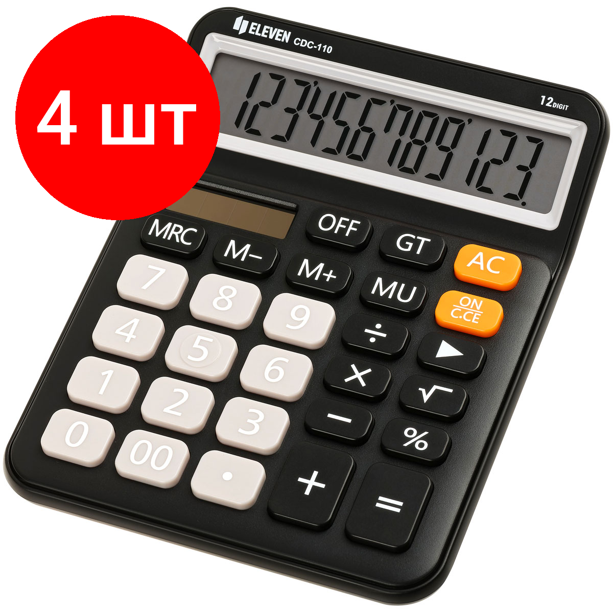 Комплект 4 шт, Калькулятор настольный Eleven CDC-110-BK, 12 разрядов, двойное питание, 125*160*28мм, черный информация: