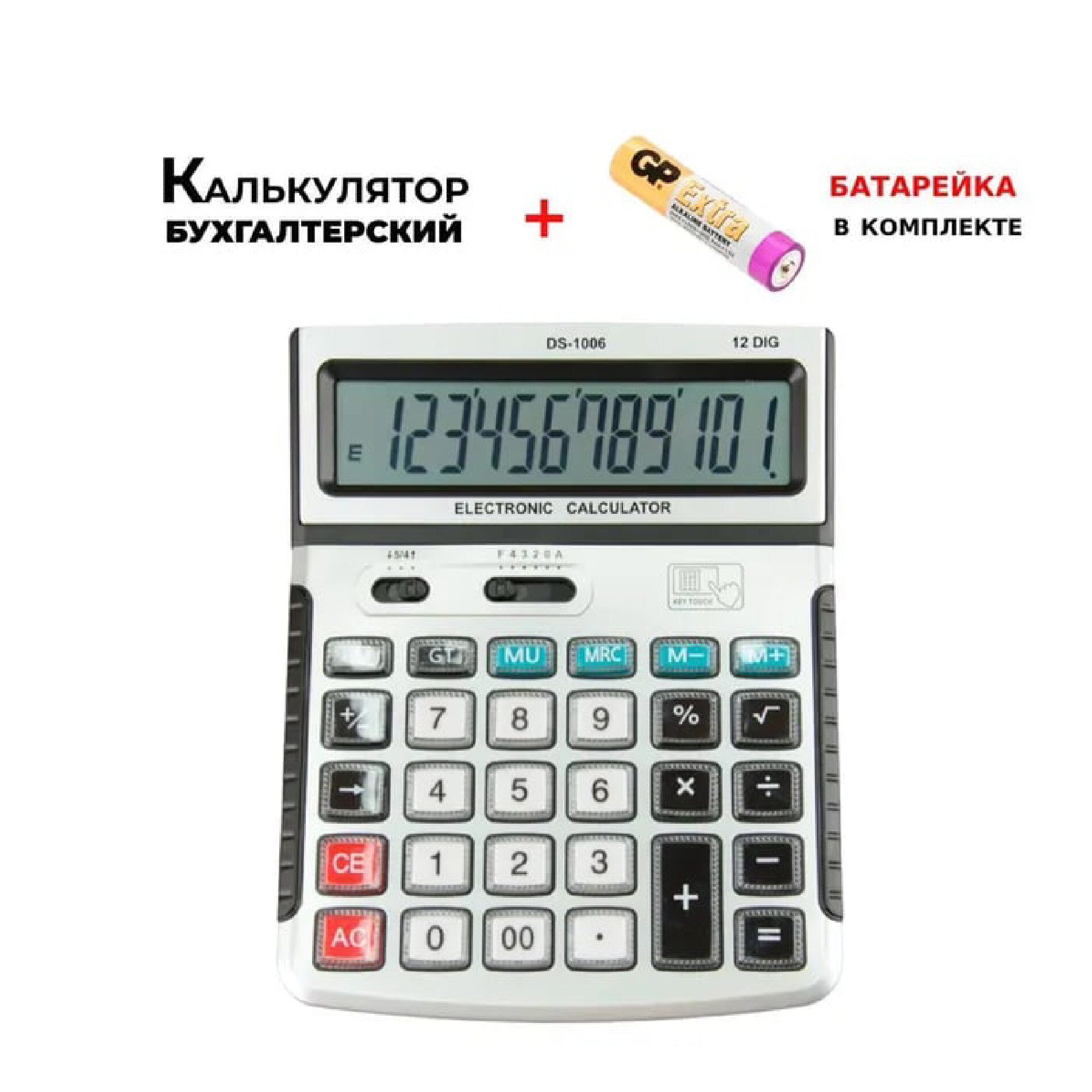 Калькулятор бухгалтерский 12 разрядов + 1шт. батарейка / DS-1006 информация: