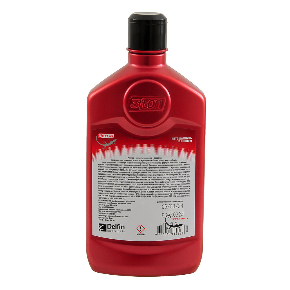 Автошампунь 3TON концентрат с воском 550 мл 3ton ТК-9 информация: