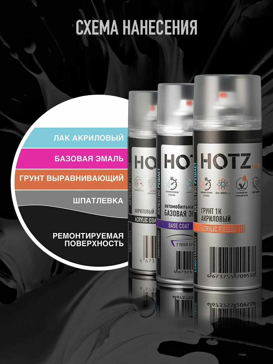 10 цен на Грунтовка 1K: Серый для автомобиля 520 мл + Акриловый лак 1K: в аэрозоле 520 мл (Комплект Аэрозольный HOTZ 1040 мл)