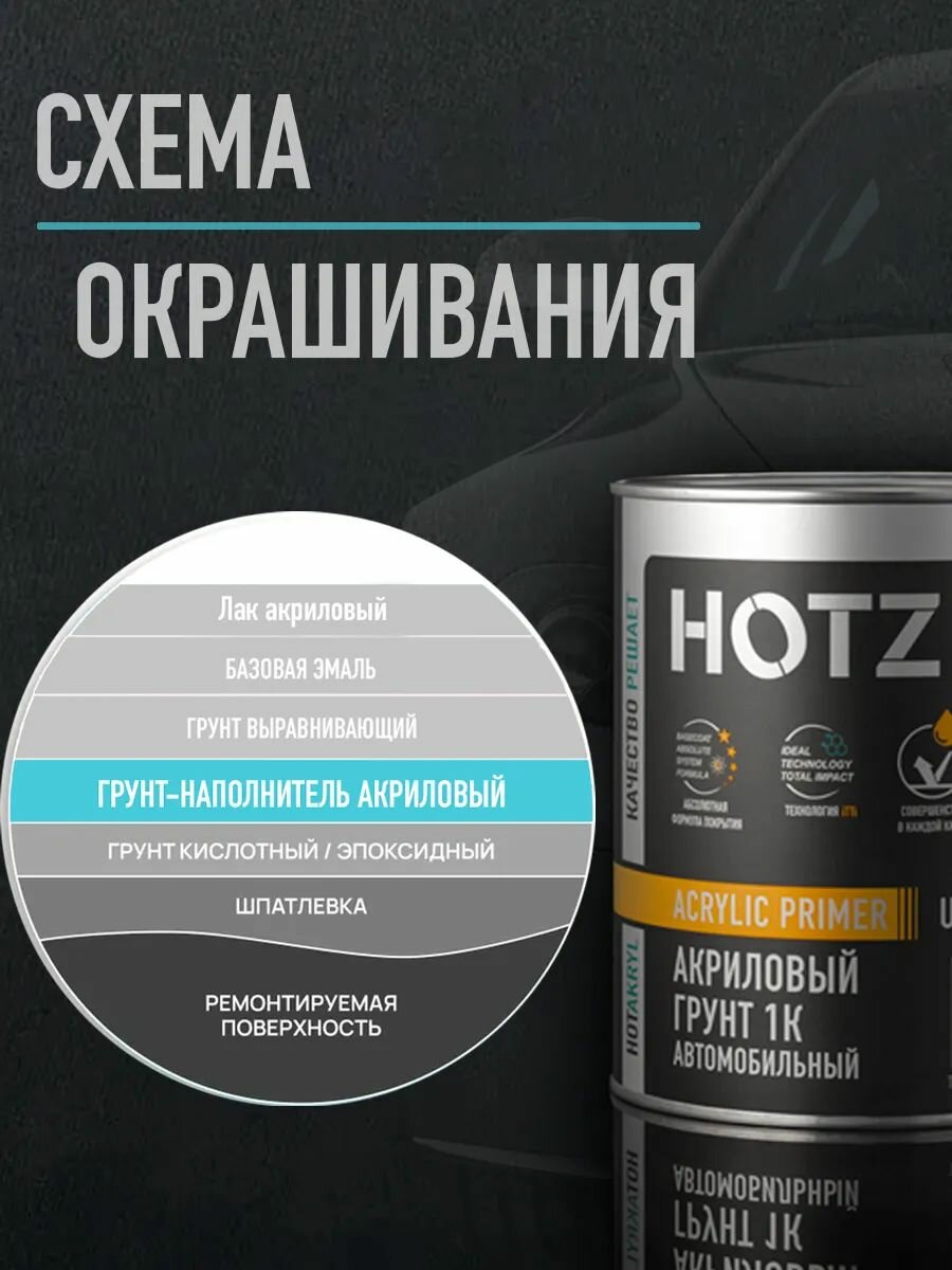 Акриловый грунт 1К HOTZ , светло-серый , 1 литр информация:
