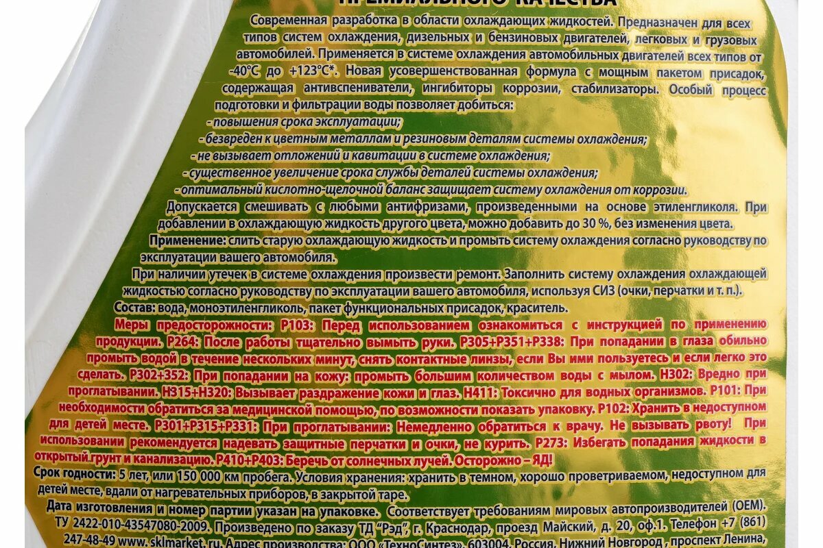 RED Антифриз, готовый к применению Universal желтый 3кг R1003 информация:
