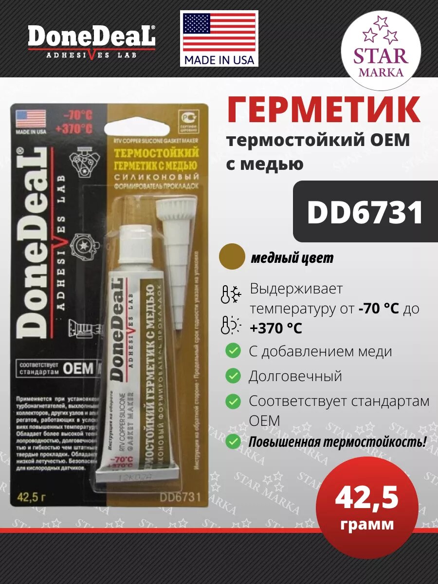 Герметик силиконовый DoneDeal DD6724, 42.5 гр, красный термостойкий до +345 С, формирователь прокладок