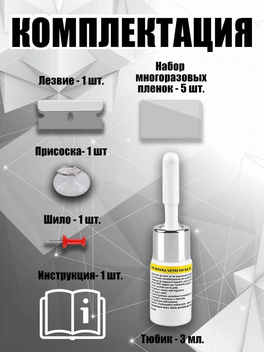 Набор для ремонта трещин и сколов на лобовом стекле автомобиля. информация: