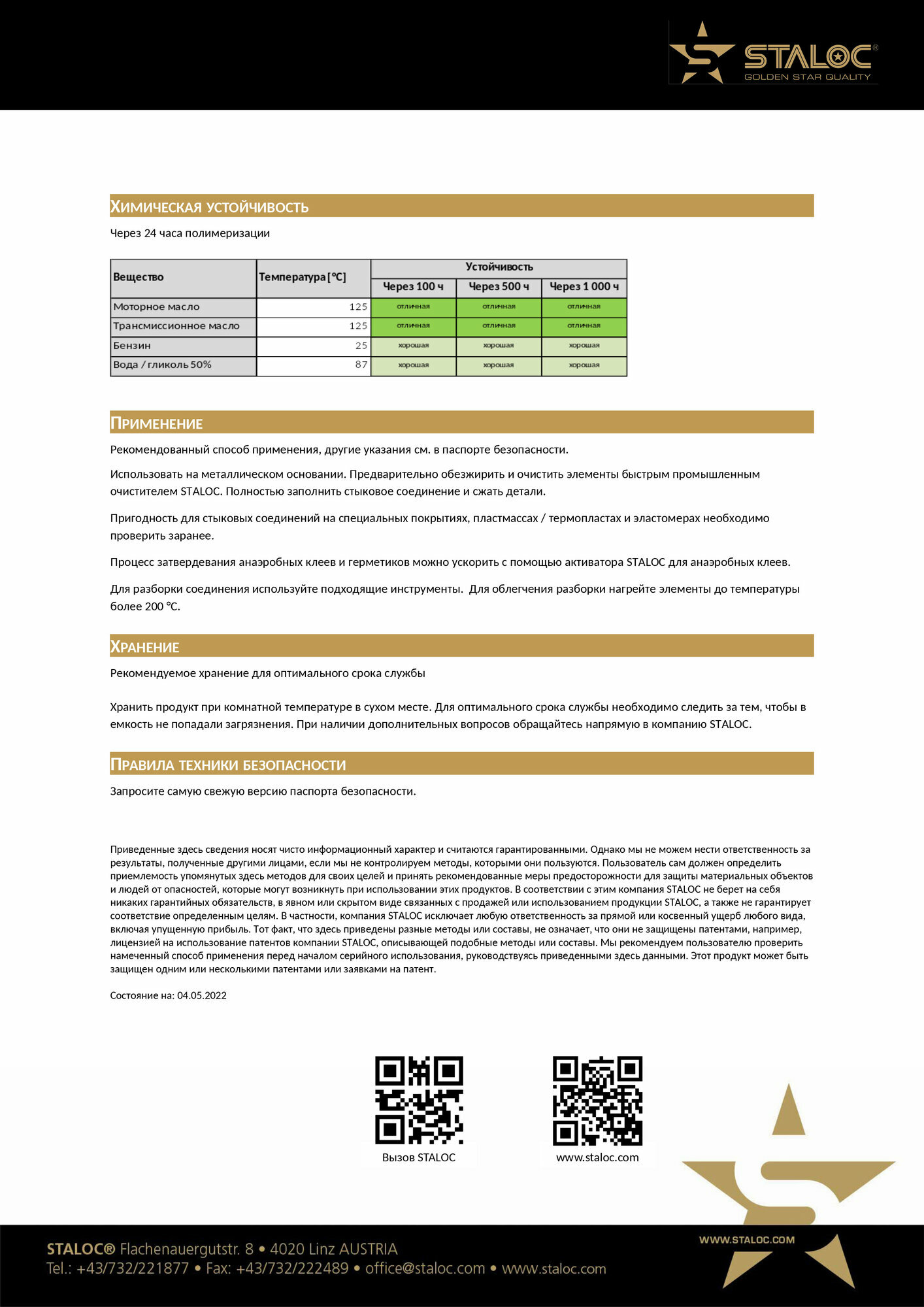 Фланцевый анаэробный герметик STALOC 5s74 (аналог Loctite 574) 50 мл средней прочности 104409018 информация: