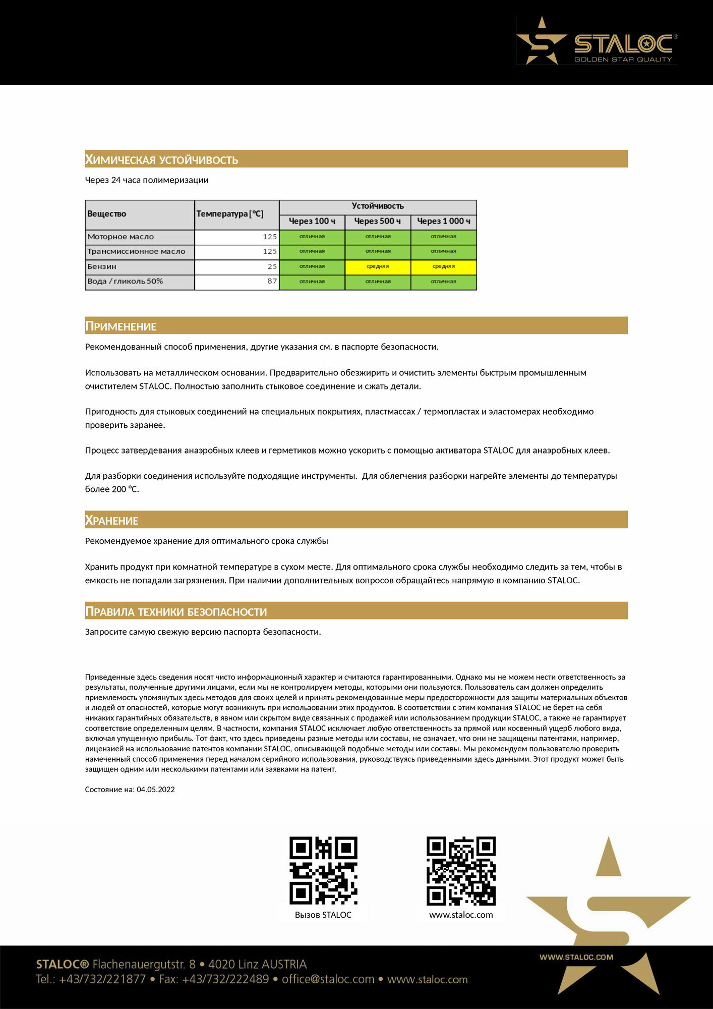 Фланцевый анаэробный герметик STALOC 5s18 50 мл (Аналог Loctite 518) средней прочности повышенной эластичности 104409016 информация: